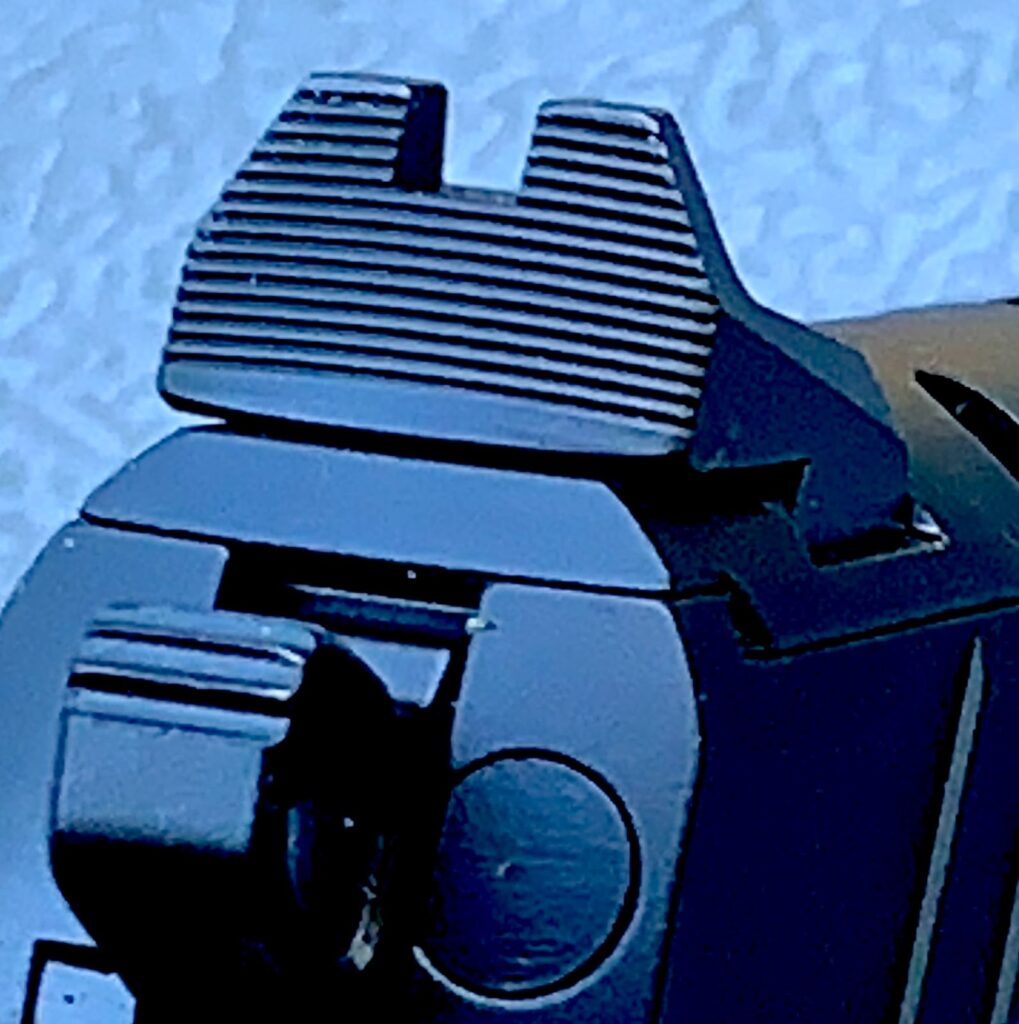 We have suppressor-height sights here, along with an optics cut and plate for an RMR red dot. We have a fiber optic front and serrated rear with a square notch. I found they shot low for me, but a red dot would fix that. I found that the front sight, at least, is a proprietary Tisas design. So, again, a red dot might do the job.