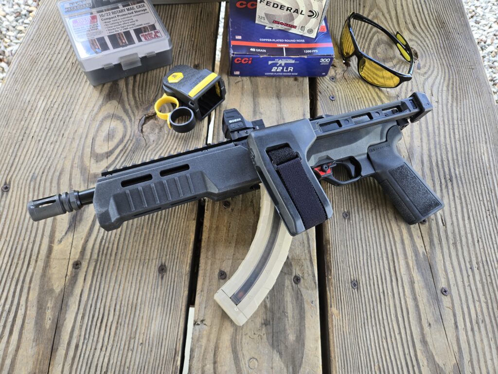 While I’m using the term PDW, it’s more to define the style than indicating that you should be using a .22LR for defense. I know some folks do, but that isn’t what I’m looking at here. I look at these builds as a fun SMG/PDW-style gun that’s easy and affordable to shoot.