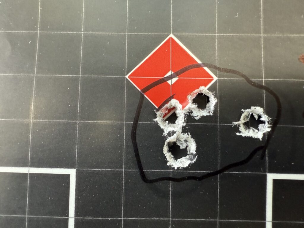 Testing took place over multiple range sessions spanning various weather conditions. Primary accuracy testing was conducted from a solid bench rest at 100 yards using 5-shot groups, with groups measured center-to-center.