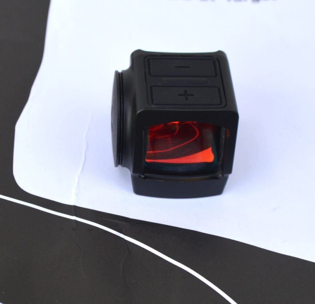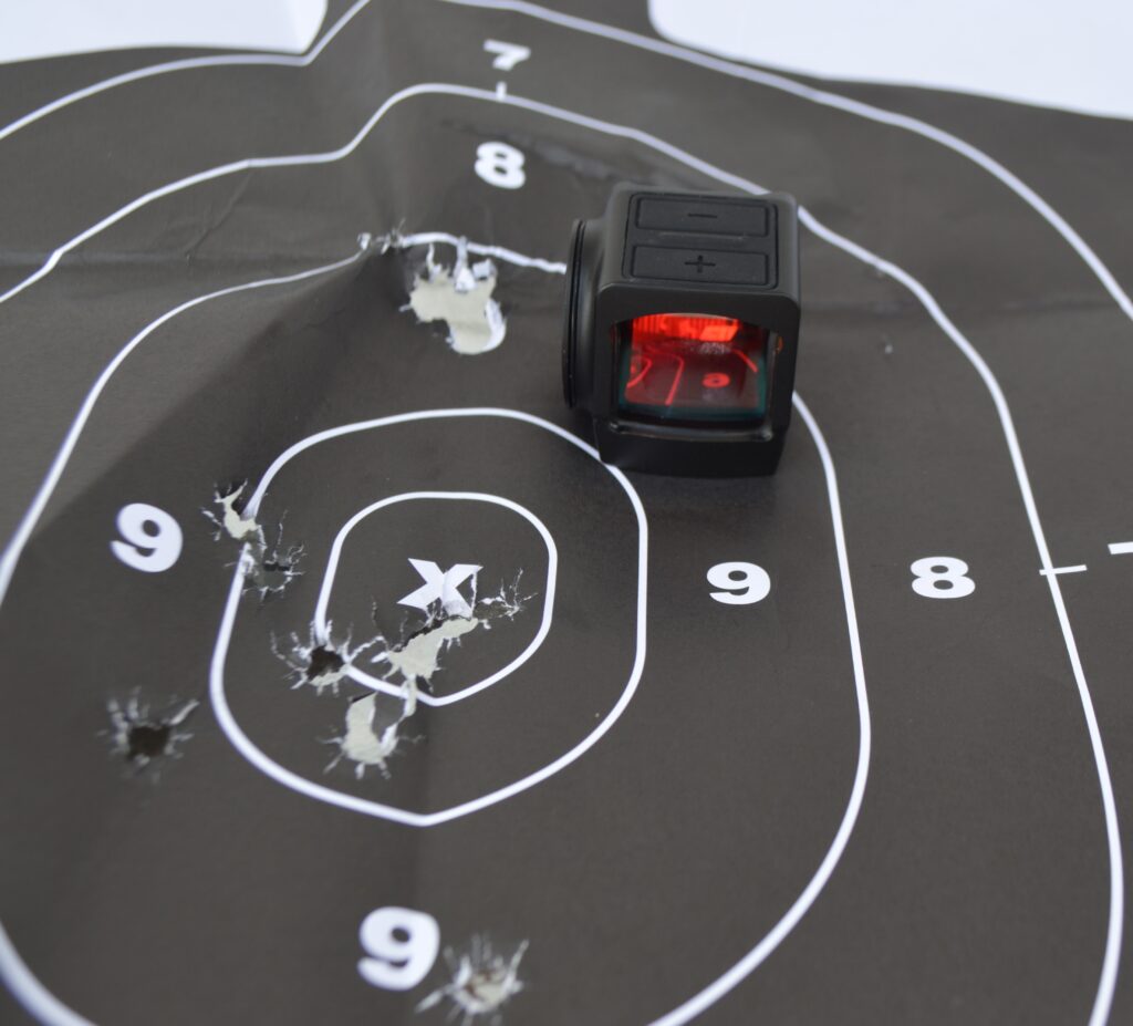 - Dynamic drills: Fast, target-focused, both-eyes-open shooting at 7, 10, and 15 yards felt natural. The small tunnel effect of the enclosed emitter seemed to help target focus and speed.