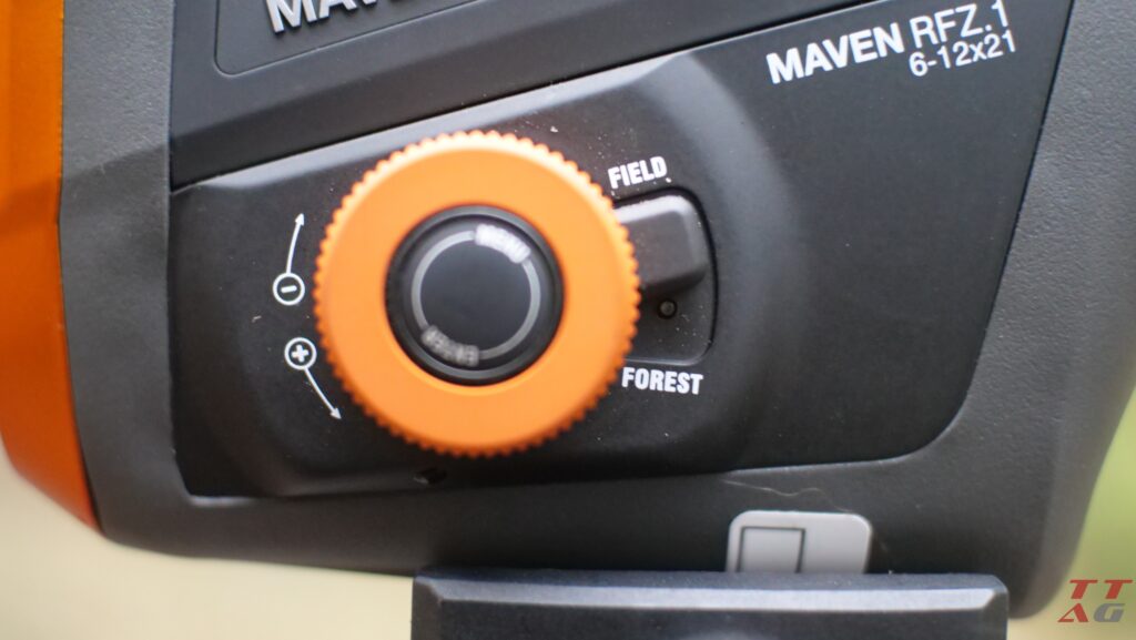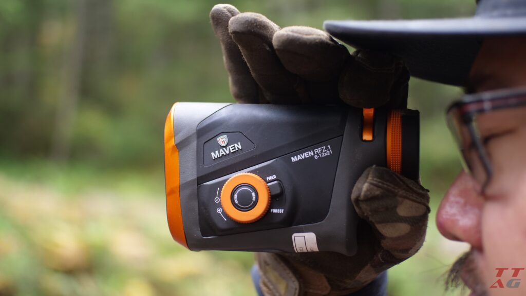 Obviously, the RFZ.1’s main claim to fame is its somewhat unique ability to go from a 6x to a 12x zoom via the cleverly introduced throw lever. At first, I almost missed this bright orange lever simply because it was integrated so well into the design that it made it almost indistinguishable from the previously released Maven RF.1 illuminated range finder.